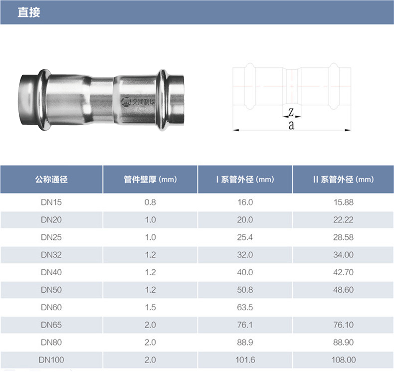 丨质量体系(Quality system): 公司拥有ISO9001质量管理体系认证和压力管道元件制造许可证,具有健全的质量检测控制体系,配备设立了工业CT、化学分析、涡流检测、水压试验、气密性试验、万能试验机等检验环节或检测设备,并建立了以顾客满意为目标的售后服务体系,保证产品质量,满足顾客需求 场景应用 (Application): 医院、地铁站、学校、会议中心、机场、家庭用水、小区二次供水、终端家装等 丨关于运输(Transport): 普通运输,打捆不包装运输;特殊运输 打捆外包(包、箱、防护集装箱)运输。 如有其它特殊要求请咨询在线客服或致电:13573388823。 丨连接方式及安装步骤(Connection method): 双卡压式、沟槽式、承插焊接式 丨产品图片(Product Pictures):