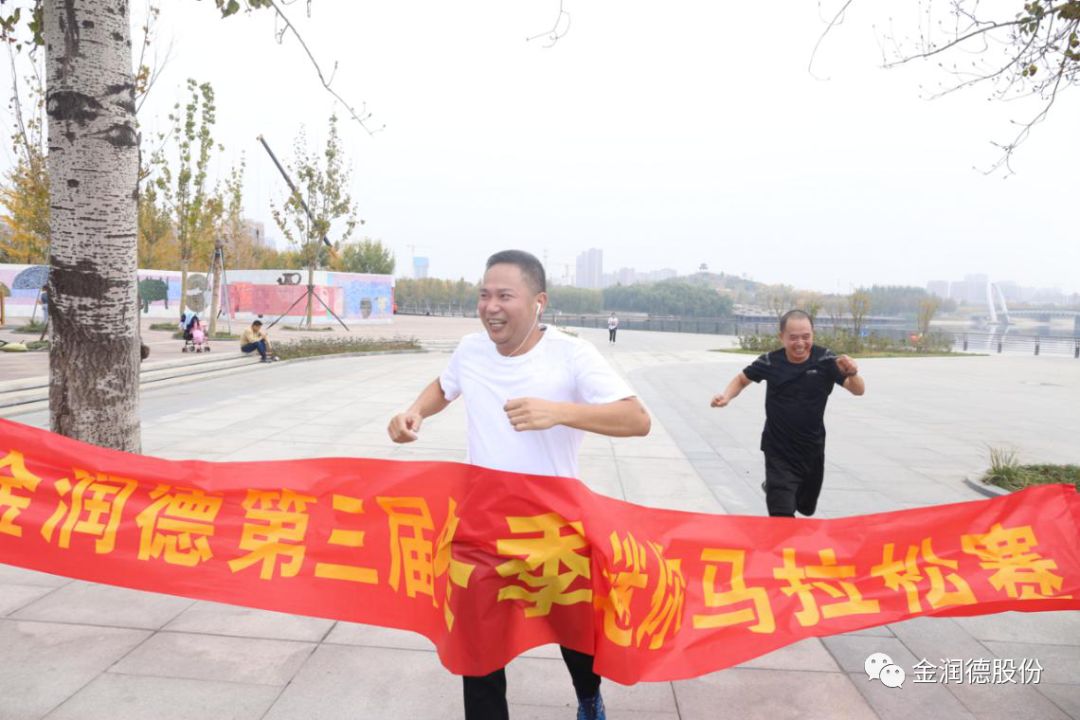 11月2日,第三届金润德冬季迷你马拉松赛在风景如画的孝妇河湿地公园鸣枪起跑。公司董事长李家泉带领全公司160余名员工在孝妇河湿地公园风景秀丽的环湖赛道上竞技奔跑。