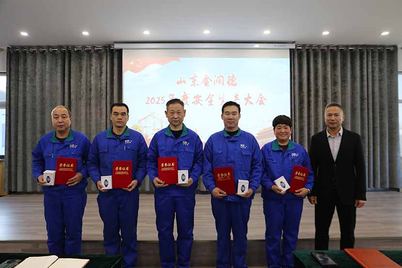 1月3日下午,山东金润德召开2025年度安全生产大会,公司全员参加会议。安委会主任王禄做《年度安全生产管理工作报告》,董事长李家泉,总经理贾衍光等管理层出席。